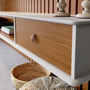 O Home Detroit é um produto desenvolvido especialmente para trazer charme na decoração de salas de e escritórios. Esse item decorativo é requintado e muito elegante. Conta com pintura semi brilho, tampo e base em MDF 15mm e 1 gaveta com puxador em couro.