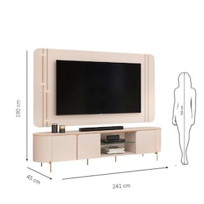 Home Estante Ariana 3 Portas E Cantos Arredondados Off White Com visual contemporâneo e acabamento de alto padrão, o conjunto Home Ariana é ideal para quem busca um ambiente elegante e funcional na sala de painel com detalhe ripado valoriza o design e acomoda TVs de até 75 polegadas, enquanto a bancada oferece espaço amplo para eletrônicos, objetos decorativos e itens do dia a portas usinadas dispensam puxadores externos, garantindo um visual clean e estrutura com pés em madeira proporciona firmeza, durabilidade e um toque natural que harmoniza com diferentes estilos de decoraçãões:Altura: 190cmLargura: 241cmProfundidade: 45cmObservações:- Painel com detalhe ripado moderno e elegante- Ideal para TVs de até 75 polegadas- Bancada com ótimo espaço para eletrônicos e objetos decorativos- Portas com frentes usinadas e amplo espaço interno- Pés em madeira resistentes e acabamento refinado- Conjunto versátil, ideal para salas amplas e ambientes integrados