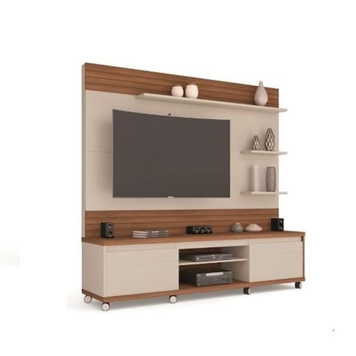 Home Estante Painel TV Até 60 Polegadas Rodízios 2 Portas Prateleiras Nichos Cedro - Off White