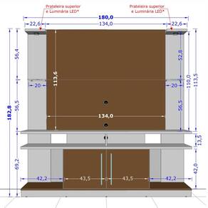 Marca: Móveis Bechara;Linha: Sala;Modelo: York com LED;Material da estrutura: MDP de 25 mm e 15 mm com vidro de 06 mm;Acabamento: Pintura UV;Altura: 183 cm;Largura: 180 cm;Profundidade: 38,5 cm;Requer montagem: Sim (kit montagem incluso);Tamanho máximo de TV: 60 polegadas;Suporte de TV incluso: Não;Iluminação: LED, a pilha (pilhas não inclusas);Quantidade de portas: 02;Material de dobradiças: Metálicas;Quantidade de gavetas: Não se aplica;Material das corrediças: Não se aplica;Com puxador: Sim;Material do puxador: Alumínio anodizado;Quantidade prateleiras: 03;Com Rodízios: Não;Peso suportado: 90 kg;Condição do item: Novo;É kit: Não;Altura da embalagem: 20,5 cm;Largura da embalagem: 60,5 cm;Comprimento da embalagem: 181,5 cm;Peso: 70,100 Kg;Embalagem do envio: Papelão, plástico e isopor.Informações adicionais:- Os objetos que ambientam as fotos não acompanham o produto;- O produto será entregue desmontado;- É de inteira responsabilidade do cliente a montagem do produto e/ou instalação, custos de transporte por escadas e/ou elevadores, guincho ou içamento, assim como possíveis irregularidades provenientes de manuseio inadequado;- Embora o produto acompanhe o manual de montagem, verifique a complexidade antes de decidir montá-lo sozinho, recomendamos que contrate um profissional de sua confiança;- Fique atento, nossas cores podem sofrer alterações dependendo do seu monitor;- ANTES DE MONTAR O SEU PRODUTO, certifique-se que todas as instruções dispostas no manual, bem como todas as ferragens descritas, estejam presentes dentro da embalagem. Verifique se há alguma peça danificada, caso esteja, prestaremos a devida assistência dentro do prazo da garantia.