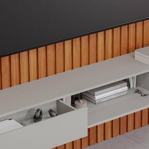 O Home Maragogi para até 84 combina design sofisticado e funcionalidade para transformar a sua sala. Fabricado em MDF com pintura UV, ele oferece durabilidade e um acabamento elegante. O detalhe ripado em alto relevo adiciona um toque de modernidade, enquanto a porta basculante com dobradiças metálicas e as duas gavetas com corrediças telescópicas proporcionam praticidade no armazenamento de objetos e aparelhos eletrônicos. A prateleira superior oferece espaço adicional para itens decorativos ou equipamentos. Com espaço livre de 210 cm de largura por 120 cm de altura, o Home Maragogi acomoda até 84, garantindo um ambiente de entretenimento funcional e estiloso.