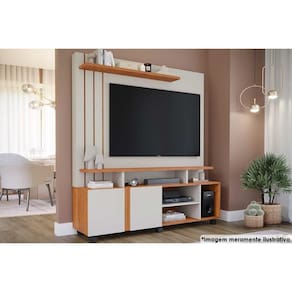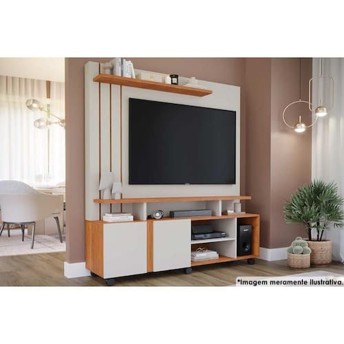 Home p/ TV até 55 Pol Valência c/ 2 Portas e Rodízios 160x182cm Off White/Cinamomo - Permóbili