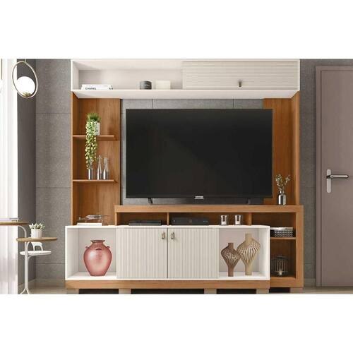 Home P/ Tv Até 65 Pol Sinfonia C/ 3 Portas E 7 Nichos 200x203cm Freijo/off White Mr - Caemmun