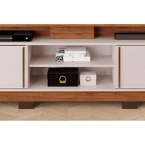 Home p/ TV até 70 Polegadas Martino c/ Prateleira Nichos e Pés 200x190cm Freijó/Off White - DJ Móveis - Branco