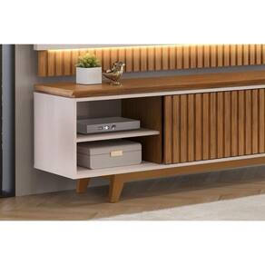 Tipo de Porta - Portas de Correr Diferenciais das Portas - Portas Ripadas - Portas com Detalhe Ripado Quantidade de Portas - 1 Porta de Correr Quantidade de Espelhos - Não Acompanha Espelho Tipo de Iluminação - Iluminação Fita LED Quantidade de Prateleiras - 2 Prateleiras Quantidade de nichos - 4 Nichos Ideal para TVs até (Polegadas) - 75 Tipo dos Pés - Pés de Madeira Quantidade de Pés - Móvel possui 4 pés