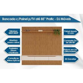 Rack Bancada c/ Painel p/ TV até 85 Pol Pratic Ripado 3 Gavetas 250x240cm Cedro/Bali - DJ Móveis