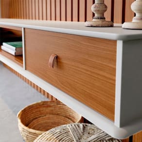 Home Para Sala De Estar 250cm TV 75 Polegadas, é funcional e muito amplo, irá preencher sua sala ou escritório com muito estilo e classe. Estrutura em MDP de 15mm, 30mm, 45mm e MDF de 15mm, que proporcionam melhor acabamento nas bordas e superfícies, contando com pintura em acabamento UV (Semi-Brilho). Composto por nicho, gaveta com corrediças metálicas e puxador em couro, além de prateleira superior com 23,5 cm de profundidade para a disposição de seus objetos de decoração. Detalhe ripado no painel que dá um toque especial à parede do seu cômodo, passa fios e acompanha kit de ferragens para fixação. É ideal para TVs de até 75 polegadas fixadas no painel. Sua prateleira superior suporta até 5 Kg, seu painel suporta até 35 kg, e seu nicho suporta até 15 kg distribuídos. Este móvel chegará na sua casa separado em 04 volumes.
