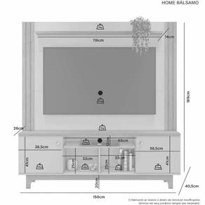 Home Bálsamo é a nova novidade na Facilita Decor! Um produto moderno e sofisticado, perfeito para embelezar o seu lado. O Home Bálsamo, além de ter detalhes ripados no painel, que o deixam ainda mais elegante, possui 2 portas usinadas com dobradiça de pressão e puxadores em ABS, pés MDF usinados, acompanhando suporte para TV de até 65 polegadas. Não perca tempo e adquira logo o seu!!!
