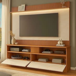 A estrutura em MDP garante durabilidade e resistência, enquanto o design com painel e ripado adiciona um toque contemporâneo ao ambiente. Com duas portas e duas prateleiras, oferece amplo espaço para organizar seus dispositivos eletrônicos e itens decorativos, mantendo tudo ao seu alcance.