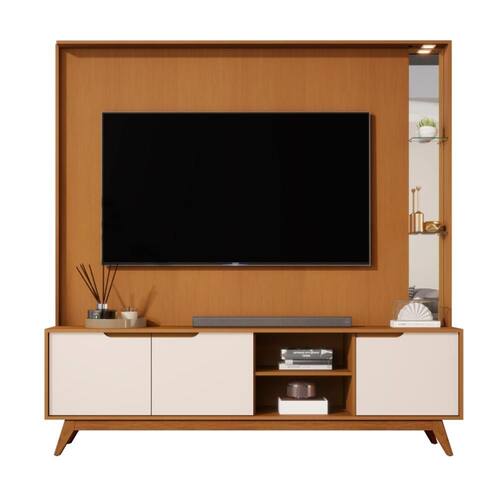Home para Tv 80" Tucumã 1.8 Nature Off White Com LED JB Bechara