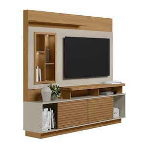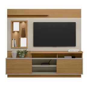 Transforme sua sala de estar com o Home Golden, projetado para TVs de até 60”. Com porta de correr ripada, nichos com espelho e luminárias de LED, este conjunto une design moderno e praticidade, perfeito para destacar sua decoração e organizar seus aparelhos eletrônicos.