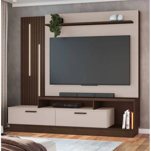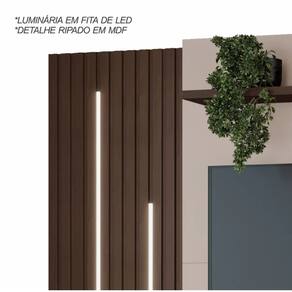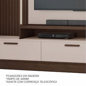 Luminárias em Led Detalhe ripado Puxadores de madeira Gavetas com corrediças telescópicas Tampo 40mm Espaço TV:1490mmx1160mm(LxA) Acompanha suporte