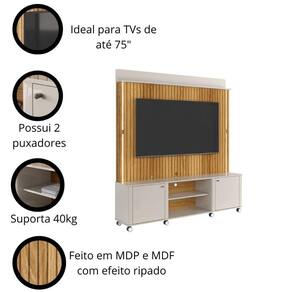 Home Para Tv Até 75 Led Ripado 3d 1,83m Off White Madeirado - Lukaliam Móveis