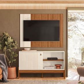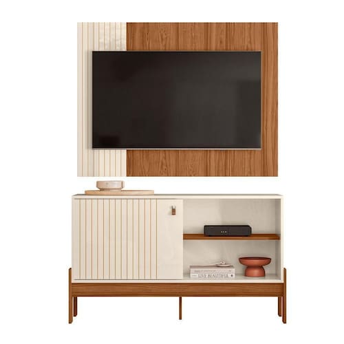 Home Rack Painel Wood Sala Para Tv De 42 Polegadas Perola Com Cinamomo Com design moderno e funcional, o Rack Wood é a escolha ideal para quem busca praticidade e elegância em um único mó formato compacto se adapta perfeitamente a salas menores, sem abrir mão do charme e da sofisticaçã rack oferece nichos bem distribuídos para eletrônicos, livros e objetos decorativos, mantendo o ambiente sempre linhas retas e acabamento refinado, o modelo combina com diversos estilos de decoração, trazendo aconchego e estilo para sua ões aproximadas:Altura: 70,5cmLargura: 120 cmProfundidade: 30cmObservações:- Espaço para TV de até 42?- Nichos abertos para eletrônicos e decoração- Acabamento UV de alta resistência e brilho uniforme- Design moderno e funcional- Ideal para ambientes compactos- Fácil montagem com manual ilustrado- Pés em madeira que garantem estabilidade e elegância Marca: Não Informado