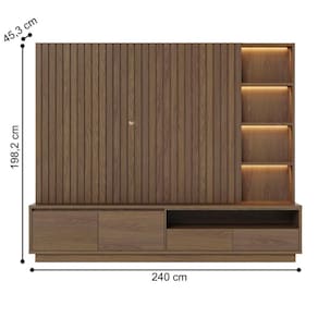 Requer montagem: Sim | Inclui manual de montagem: Sim | Quantidade de caixas de embalagem: 4 | Comprimento: 45,3 | Profundidade: 45,3 | Altura: 198,2 | Largura: 240 | LARGURA PRODUTO COM EMBALAGEM (CM): 50,6 | PARA TVS DE ATÉ:: 82 | COMPRIMENTO DO PRODUTO (CM): 45,3 | ESTADO DE ORIGEM: PR | QUANTIDADE DE PRATELEIRAS: 3 | INSTRUÇÕES/CUIDADOS: Limpar com pano macio e seco, não utilizar produtos abrasivos | PRODUTO: Home | MATERIAL PRINCIPAL: MDP | QUANTIDADE DE PORTAS: Não possui | ALTURA DO PRODUTO COM EMBALAGEM (CM): 34,5 | MATERIAL PARA FILTRO: MDP | DESCRIÇÃO DO TAMANHO: 198,2x240x45,3 cm | INDICADO PARA TVS: 60 | QUANTIDADE DE GAVETAS: 4 | ILUMINAÇÃO: 4 réguas de LED | CONTEÚDO DA EMBALAGEM: 1 Home | CORES DO PRODUTO (FILTRO DE CORES): Amendoa | PESO PRODUTO COM EMBALAGEM (KG): 158 | PESO DO PRODUTO (KG): 156,9 | COMPRIMENTO PRODUTO COM EMBALAGEM (CM): 246,9 | PRODUTO PRECISA DE MONTAGEM?: Sugerimos a contratação de um montador para a montagem do produto. Não nos responsabilizamos por causadas no ato da montagem. | LARGURA DO PRODUTO (CM): 240 | ALTURA DO PRODUTO (CM): 198,2 | COR PREDOMINANTE: Marrom