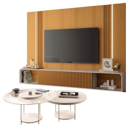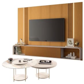Home Suspenso Cinamomo Off White e Kit Mesa de Centro Sky Off White- HB Móveis