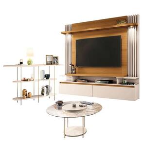 Home Suspenso Cosmo Cinamomo Off White e Aparador Infinity e Mesa de Centro Sky com Tampo de Vidro Off White- HB Móveis