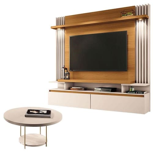 Home Suspenso Cosmo Cinamomo Off White e Mesa de Centro Sky Off White- HB Móveis