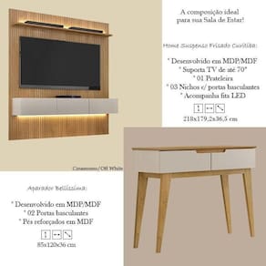 O móvel perfeito para sua sala de estar você encontra aqui. Apresentamos a você o Home Suspenso Frisado Curitiba e o Aparador Bellíssima que foram desenvolvidos pela Valdemóveis com materiais de excelentes qualidades, contam com lindo e moderno design que irá proporcionar um ambiente aconchegante e com um toque refinado. Aproveite!