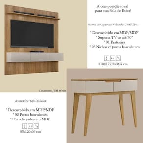 Home Suspenso Frisado Curitiba 180 e Aparador Bellíssima Cinamomo Off White - Valdemóveis