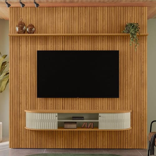 Sinta a diferença. Nosso conjunto de painel e rack foi projetado para proporcionar uma experiência única. A combinação perfeita entre estética e funcionalidade cria um ambiente convidativo e relaxante. Imagine curtir seus filmes e séries favoritos em um espaço elegante e organizado. Com nosso conjunto, você não apenas assiste TV, você vive uma experiência.