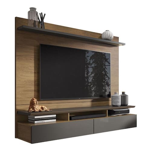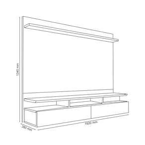 Produto: Home Suspenso Noruega Freijó/Grafite Perolizado Painel para TV até 55 Polegadas com prateleira superior em MDP 25mm; Tampo de 25mm fresado; duas portas basculantes; Uso obrigatório da TV fixada no Painel. Tampo suporta máximo 5 kg. Cor: Freijó/Grafite Perolizado Material: MDP 25 mm e 15 mm Pintura UV Textura/Brilho Altura (cm): 134 Largura(cm): 162 Profundidade (cm): 38 Peso (kg): 53,1 Peso Suportado: 40 Necessita Montagem: Sim Cuidados: Limpeza apenas com um pano úmido. Não utilizar produtos químicos ou abrasivos. Quantidade de Portas: 2 Quantidade de Gavetas: 0 Quantidade de Pés: Não Possui Quantidade de Prateleiras: 1 Peso Suportado por Prateleira: 2 Kg Quantidade de Nichos: 3 Peso Suportado por Nicho: 3 Kg para Tv´s de Até (polegadas): 55 Quantidade de Led: 0 Garantia: 3 Meses