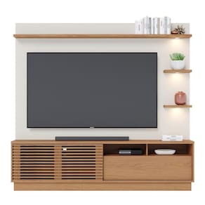 Home Theater 1 Porta Ripada Deslizante Tv 70 Polegadas Campeche - Freijó / Off White Matte Freijó / Off White Matte