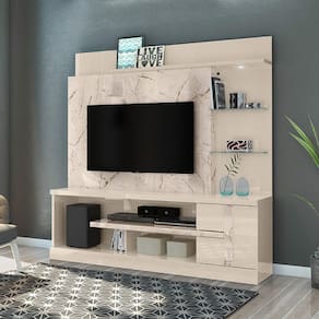 Home Theater Alan para TV de até 55 polegadas - CALACATA / OFF WHITE - Madetec Procurando Home Theater para a sua sala de TV. Aqui voce encontra os o HHome Theater Alan da Madetec, projetado para acomodar televisor de até 55 polegadas tem como diferenciais: O Painéis em MDP de 15 e 40mm com pintura UV, portas com dobradiças metálicas, prateleiras de vidro 5mm para objetos decorativos, luminária de LED e sistema de fixação com girofix. Dimensões do produto Montado: Largura: 181 cm Altura: 180 cm Profundidade: 39 cm Características:Material produto: MDPRevestimento: Pintura UVPossui 1 PortasDobradiças metálicasPossui 2 prateleiras com vidroMini Sapata PlásticaPossui pésEntrada TV Largura 136 cm Altura 99 cm Profundidade 26 cm para 55 polegadasSistema de montagem: GirofixPeso total suportado: 50 kgPeso do produto: 71,20 KgQuantidade de Volumes: 02 Garantia: 3 meses Montagem: Recomendamos que a montagem seja feita por um profissional. Recomendação de Limpeza: Utilize pano levemente úmido. Observações: - Nos responsabilizamos pela entrega dos produtos até onde as rodovias alcançam, entregas fluviais ou aéreas devem ser cotadas a parte - As imagens são ilustrativas, não acompanham objetos de decoração - A montagem será de responsabilidade do comprador. Não nos responsabilizamos, no ato da entrega, por subir escadas/elevadores ou transporte por guincho em apartamentos. Eventuais despesas são de responsabilidade do comprador. - Confira as dimensões do produto e certifique-se de que passará normalmente por supostos elevadores, portas, escadas e/ou corredores de sua residência.