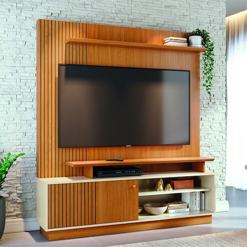 Características: Estrutura em MDP Pintura semi brilho Porta Deslizante em MDF Puxador de Plástico Tampo e prateleira superior com borda frontal chanfrada Espaço para TV até 65 Polegadas