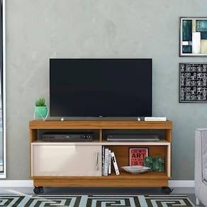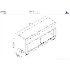 Características: Estrutura em MDP Acabamento pintura UV Capacidade para TV de até 50 polegadas Dimensões: Altura: 60 cm Largura: 120 cm Profundidade: 34 cm Peso: 21.3kg