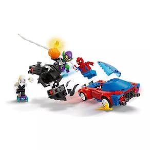 Homem-aranha e Duende Verde Venom Marvel - Lego 76279 Quando o Homem-Aranha e o Aranha Fantasma dão uma volta no Carro de Corrida do Aranha, o Duende Verde Venom desce em seu planador para atacar com este conjunto de brinquedos LEGO para construir. O Aranha revida usando os disparadores de espigas do carro, enquanto a Aranha Fantasma pega seu skate e seus blasters de teia e o persegue. Enquanto o Duende se prepara para lançar uma bomba de abóbora, o Homem-Aranha aparece para salvar o dia, envolvendo o supervilão da Marvel em uma teia gigante Maiores de 7 anos Plástico O carro do Homem-Aranha mede mais de 1 1/2'' A x 5 1/2'' C x 2 1/2'' L Segurança Homologação Inmetro: IP-BRI-2509/2021-01 Ean: 673419390880