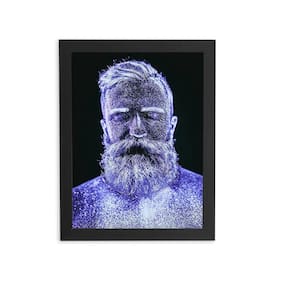 A imagem, que retrata a fotografia de um homem na neve azul, foi impressa com qualidade superior, garantindo cores vibrantes e uma reprodução fiel dos detalhes da foto. A composição visual é enriquecida pela moldura preta, que cria um contraste marcante, permitindo que a imagem se destaque ainda mais na parede.