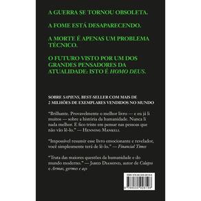 Neste Homo Deus: uma breve história do amanhã, Yuval Noah Harari, autor do estrondoso best-seller Sapiens: uma breve história da humanidade, volta a combinar ciência, história e filosofia, desta vez para entender quem somos e descobrir para onde vamos. Sempre com um olhar no passado e nas nossas origens, Harari investiga o futuro da humanidade em busca de uma resposta tão difícil quanto essencial: depois de séculos de guerras, fome e pobreza, qual será nosso destino na Terra? A partir de uma visão absolutamente autêntico de nossa história, ele combina pesquisas de ponta e os mais recentes avanços científicos à sua conhecida capacidade de observar o passado de uma maneira inteiramente nova. Assim, descobrir os próximos passos da evolução humana será também scobrir quem fomos e quais caminhos tomamos para chegar até aqui.