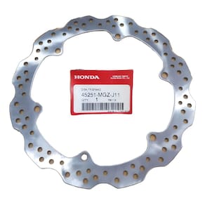 Informações técnicas detalhadas incluem: Peso: 1.5 kg; Dimensões: 20.0 cm x 20.0 cm x 0.3 cm. O código do fabricante para esta peça é 45251-MGZ-J11 e o SKU correspondente é RMDI20201118. Adquira este disco de freio e mantenha sua motocicleta segura e pronta para viajar com tranquilidade.
