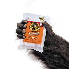 Bastões Gorilla Hot Glue, tamanho real, 4 polegadas de comprimento x 0,43 polegadas de diâmetro, 30 unidades, transparentes, adere: madeira, metal, vidro, plástico, floral, tecido, couro, espuma e muito mais (pacote com 1 com 30 bastões de cola)