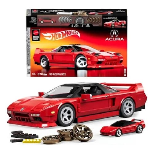 ste kit cheio de detalhados inclui peças extras para personalização, folha de adesivos, calotas metálicas, placa exclusiva e um carrinho metálico para colecionar e exibir.Pode ser montado como Honda NSX ou Acura NSX, com placas e posições de volante que trocam. Colecione todos os modelos da linha Elite Series™ e ganhe as pistas!Monte uma lenda japonesa! Esta réplica do '90 Acura NSX vem em escala 1:16, totalmente montável, com detalhes realistas.Inclui peças extras, calotas metálicas e adesivos para transformar seu carro.E você pode escolher montar o Acura NSX ou o Honda NSX!Carro metálico e placa exclusivos: inclui um carrinho de metal em escala 1:64 e uma placa da marca, disponíveis em primeira mão nos kits Mattel Brick Shop.Detalhes fiéis ao NSX: vem com portas que abrem, faróis retráteis, direção funcional e placas trocáveis, como no autêntico.