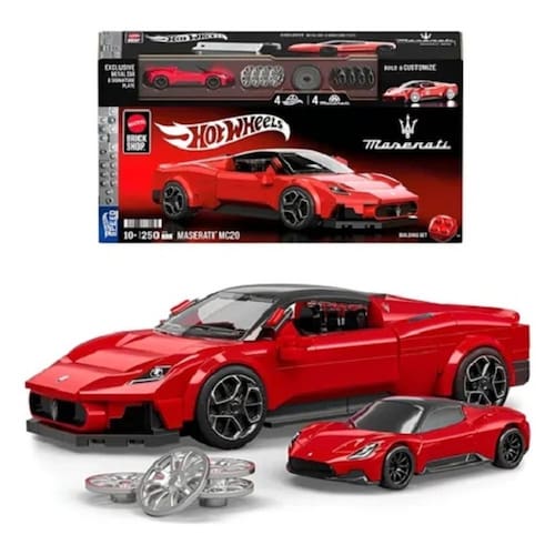 Mattel Brick Shop Hot Wheels Jogo de Construção Speed Maserati MC20 em escala 1:32 com Placa de Coleção e 1 carrinho de metal Perfeito para colecionadores.Monte o superesportivo italiano!Esta réplica do carro Maserati MC20 vem em escala 1:32, totalmente montável, com detalhes realistas.Personalize sua máquina!Inclui folha de adesivos personalizada e 2 jogos de calotas para transformar seu carro.Carro metálico e placa exclusivos: inclui um carrinho de metal em escala 1:64 e uma placa da marca, disponíveis em primeira mão nos kits Mattel Brick Shop.Detalhes fiéis do MC20: vem com portas tipo "asas de borboleta" e motor visível, como no autêntico.