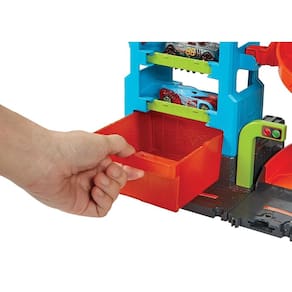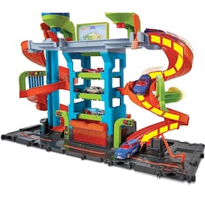 Experimente as aventuras do Hot Wheels City Lava-Rápido Mega Torre com tanques de água morna e fria que ativam as funcionalidades de mudança de cor em um fantástico conjunto sem bagunça. O conjunto vem com 1 carro Hot Wheels Color Shifters que muda de cor em água gelada e, em seguida, volta à cor em água morna. É como ter dois carros em um. As crianças podem pulverizar o carro Color Shifters com água gelada do tanque azul para mostrar um design e, em seguida, pulverizar novamente com água morna do tanque vermelho para voltar à cor. Coloque três carros Color Shifters nos pontos de estacionamento centrais e troque o design deles de uma só vez! Veículos adicionais vendidos separadamente.