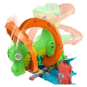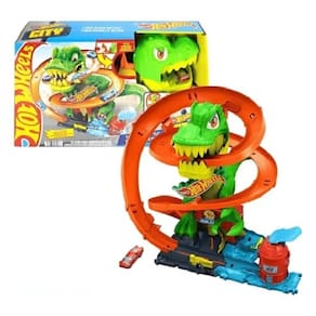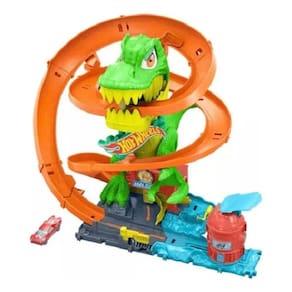 Você pode usar habilidades épicas de corrida para proteger a Hot Wheels City de um T-Rex dinâmico que quer comer todos os carros!