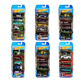 Coleção Hot Wheels conjunto com cinco veículos Surpresa. Os pacotes com 5 carros Hot Wheels oferecem cinco vezes mais ação e são perfeitos para fãs de carros de todas as idades. Com um tema interessante, detalhes autênticos e modelos realistas às grandes máquinas sobre rodas, estes pacotes são um ótimo presente para crianças e colecionadores. Turbine sua coleção! Cada pacote é vendido separadamente. As cores e as decorações podem variar.