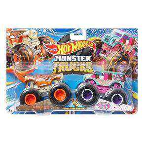Hot Wheels Monster Trucks Pack de 2 - Mattel Os Monster Trucks Demolition Doubles da Hot Wheels em escala 1:64 estão prontos para esmagar seus rivais! Esses dois pacotes da Monster Trucks para ataques épicos são propositalmente combinados para batalhas cara a cara com suas rodas gigantes e grandes personalidades!