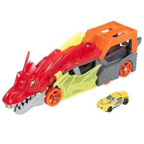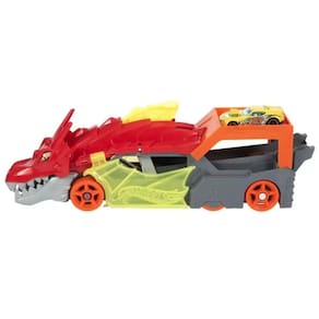 O Hot Wheels City Reboque de Dragão oferece o calor com recursos super legais que as crianças vão adorar. Em vez de disparar chamas pela boca, este dragão estiloso atira em veículos Hot Wheels®! As crianças carregam três carros nele e, em seguida, acionam o lançador para enviar veículos em alta velocidade para diferentes aventuras. Os conectores de esteira na frente e na traseira da fera permitem que as crianças prendam a esteira Hot Wheels, adicionando a uma construção existente ou para iniciar uma nova.Características:O Reboque de Dragão Wheels vem com um (1) carro Hot Wheels em escala de 1:64 e comporta até mais cinco carrinhos (vendidos separadamente) Ean: 887961916386
