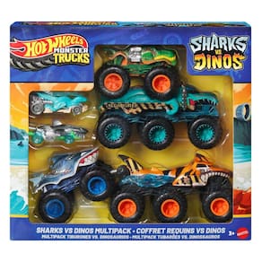 Multipack c/ 2 Monster Trucks, 2 Big Rigs e 2 Carrinhos 1/64 Marca do produto: Hot Wheels - Mattel Coleção: Sharks vs Dinos Escala: 1/64 Prepare-se para a batalha mais radical com o Hot Wheels Monster Trucks - Sharks vs Dinos Multipack! Este incrível conjunto reúne 6 veículos, sendo 4 Monster Trucks e 2 carrinhos Hot Wheels, inspirados em tubarões ferozes e dinossauros lendários Cada caminhão gigante possui rodas robustas, design marcante e detalhes temáticos que deixam a brincadeira ainda mais emocionante Com cores vibrantes e estilo agressivo, essa coleção é perfeita para criar aventuras cheias de ação e desafios monstruosos