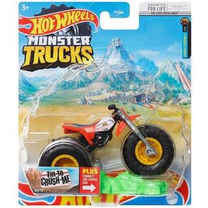 Os Hot Wheels Monster Trucks em escala de 1:64 são os mais durões já criados para competir e dominar Eles encaram qualquer combate mano a mano com seu tamanho enorme e rodas GIGANTES Cada veículo tem rodas colecionáveis e a embalagem dele fornece estatísticas sobre o monster truck, incluindo nome, tipo de caminhonete, força, ataque de colisão exclusivo e motivação para uma excelente narração de histórias Cada um é vendido separadamente, sujeito a disponibilidade. Cores e decorações podem variar.