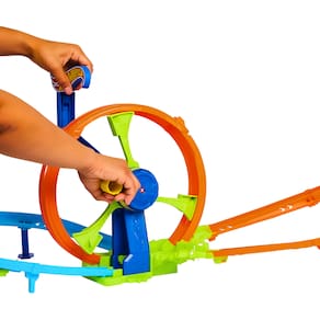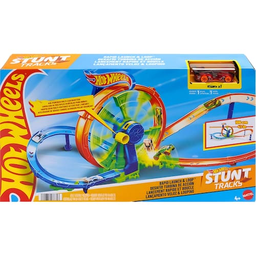 Descrição do produto : Você pode acionar o mecanismo inovador da roda e liberar os carros Hot Wheels para que eles façam acrobacias, corram e batam repetidamente nesse conjunto selvagem. Soltar o carro de brinquedo em escala 1:64 incluso na pista faz com que o lançador os impulsione automaticamente pelo loop, ao redor de uma curva, passando por uma zona de colisão e, em seguida, voltando ao início para fazer tudo de novo. Você pode aumentar a emoção adicionando mais carros para o inevitável acidente. Os carros adicionais são vendidos separadamente. O conjunto é dobrável e tem uma alça para facilitar o transporte e o armazenamento. As cores e as decorações podem variar. : Detalhes técnicos : Marca: Mattel : Referência: JBX65 : Idade recomendada: A partir de 4 anos : Material: Plástico resistente : Ean: 194735266357 : Contém na Embalagem : 1 conjunto Hot Wheels Action Desafio Turbina de Ação e um carro Hot Wheels die-cast em escala 1:64.
