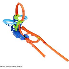 Basta colocar o carro de brinquedo Hot Wheels incluído, e ele será lançado imediatamente em um salto acrobático e um loop, seguido de outro salto e curvas, antes de repetir o movimento.