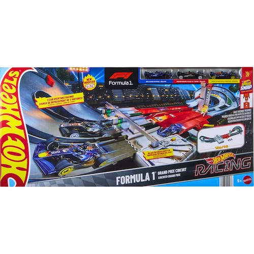 Descrição do produto : Você pode recriar a emoção das corridas do Grande Prêmio de Fórmula 1® com este conjunto de pista da Hot Wheels. No modo de corrida, o contador de voltas acompanha os carros enquanto eles passam pelo acelerador de três pistas e aceleram em curvas dinâmicas e mudanças de elevação, exatamente como nas ruas da cidade real. As crianças podem acionar o desvio interativo DRS que permite que os veículos ultrapassem o líder em uma curva - o vencedor será o primeiro a chegar ao portão de chegada. No modo infinito, corra continuamente com os três carros F1® die-cast incluídos, ajustando manualmente os desviadores para aumentar a competição. As pistas apresentam pontos de conexão Pista de Corridas Speed Snap para estender a corrida com mais pistas e conjuntos. (Pistas e conjuntos Hot Wheels adicionais são vendidos separadamente.) As cores e as decorações podem variar. :