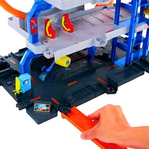 Descrição do produto : O conjunto de brinquedos Hot Wheels City Mega Garagem tem três níveis de brincadeiras centradas no carro para envolver os jovens pilotos em narrativas imaginativas e acrobacias épicas. No piso da base desse conjunto de vários níveis, as crianças podem dirigir seu carro em um lava-rápido que apresenta um rolo de espuma móvel e uma cortina de lavagem. Em seguida, você pode carregar o carro no lançador e enviá-lo para o loop duplo, onde os desviadores ajudam a guiá-lo até o andar desejado. Você pode usar um elevador movido por crianças ou usar o helicóptero de transporte de carros para transportar os veículos para qualquer nível para estacionamento. A brincadeira pode ser ampliada usando os conectores Pista Speed Snap. Um carro de brinquedo die-cast da Hot Wheels e um helicóptero de brinquedo estão incluídos. Veículos e pistas adicionais são vendidos separadamente. As cores e as decorações podem variar. :