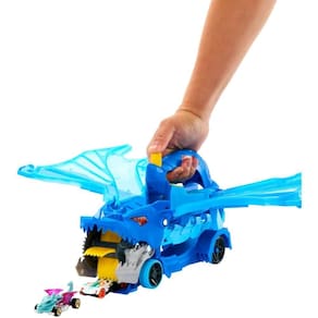 Você pode voltar para a base e liberar os veículos nos lançadores, onde eles poderão decolar em pistas lado a lado! O transportador inclui dois carros em escala 1:64, mas as crianças podem armazenar mais de 20 veículos dentro e sobre os dois dragões. (Carros adicionais vendidos separadamente.)