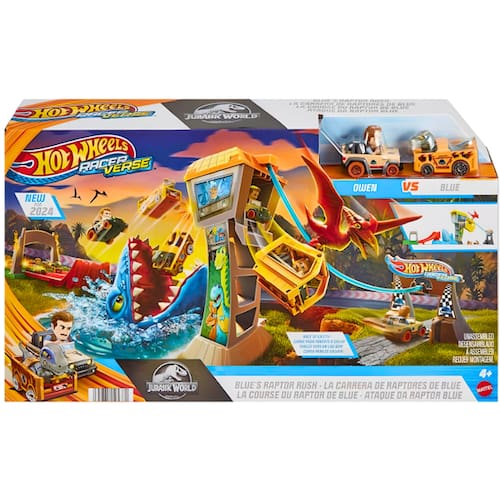 Descrição do produto : " Conjunto de pistas Raptor Rush do Hot Wheels RacerVerse Jurassic World Blue: Corra com o conjunto de pistas Raptor Rush do Hot Wheels RacerVerse Jurassic World Blue! O conjunto apresenta uma incrível corrida de arrancada e uma tirolesa no final! Inclui os pilotos fundidos Blue the Raptor e Owen com figuras não removíveis nos assentos dos motoristas de veículos Hot Wheels fundidos, preparados para corridas de pista. O piloto mais rápido chegará à torre de vigia e fará tirolesa em segurança, enquanto seu oponente cairá na boca aberta do Mosasaurus que o aguarda. O conjunto dobra-se ao meio para facilitar o armazenamento. A partir de 4 anos. : " Detalhes técnicos : Código : 112915 Fornecedor : MATTEL Referência Fornecedor : HWV65 Embalagem : UNIDADE NCM : 95030099 Código de Barras : 194735221318 Peso (kg) : 1,08 Comprimento Emb. (cm) : 25 Altura Emb. (cm) : 9 Largura Emb. (cm) : 44,5
